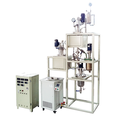 The heating method of the reaction kettle is jacketed heat-conducting oil circulating heating, equipped with heat-conducting oil heating oil furnace and hot oil circulating pump, under the condition of PID program temperature control, to achieve stable heating and cooling in the kettle.