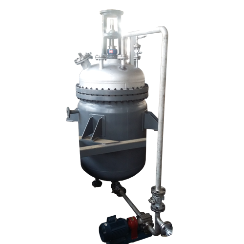 機械攪拌實現強扭力攪拌,為了使高粘度物料充分混合,在釜外增加一套循環管路,在循環泵的作用下,物料在釜外再次循環,混合更加充分。